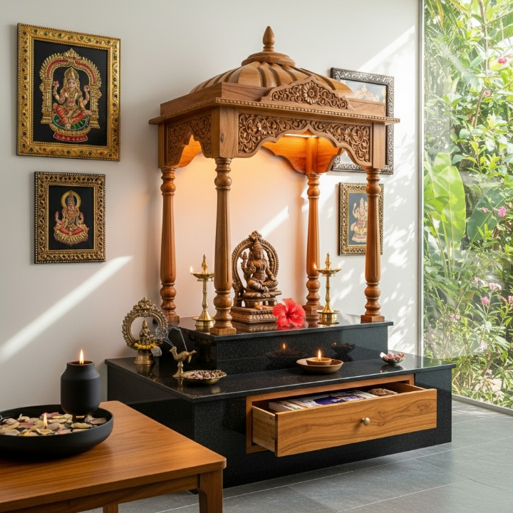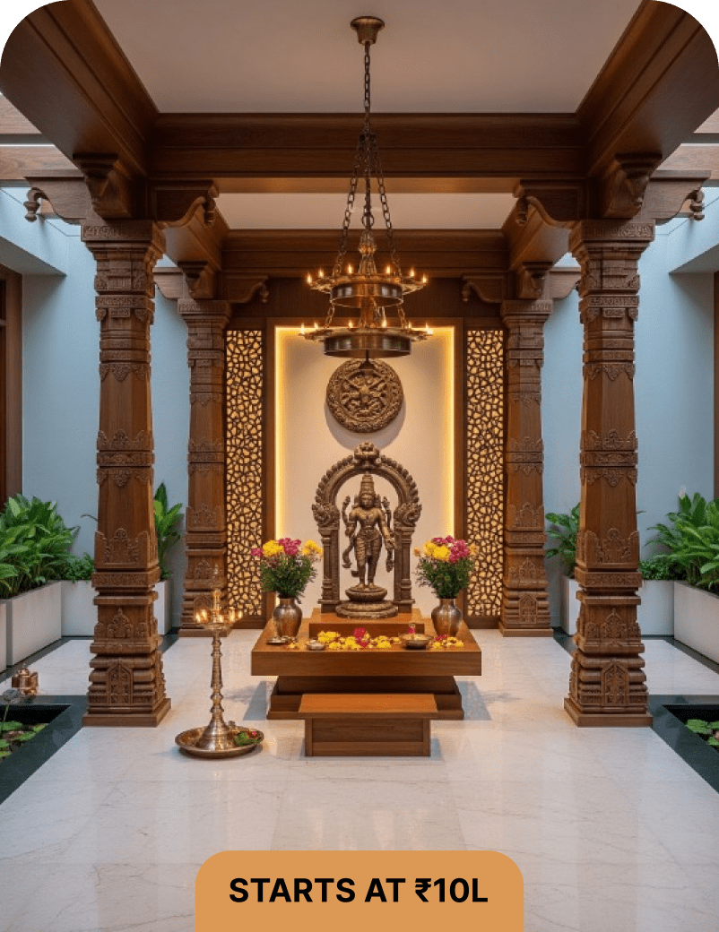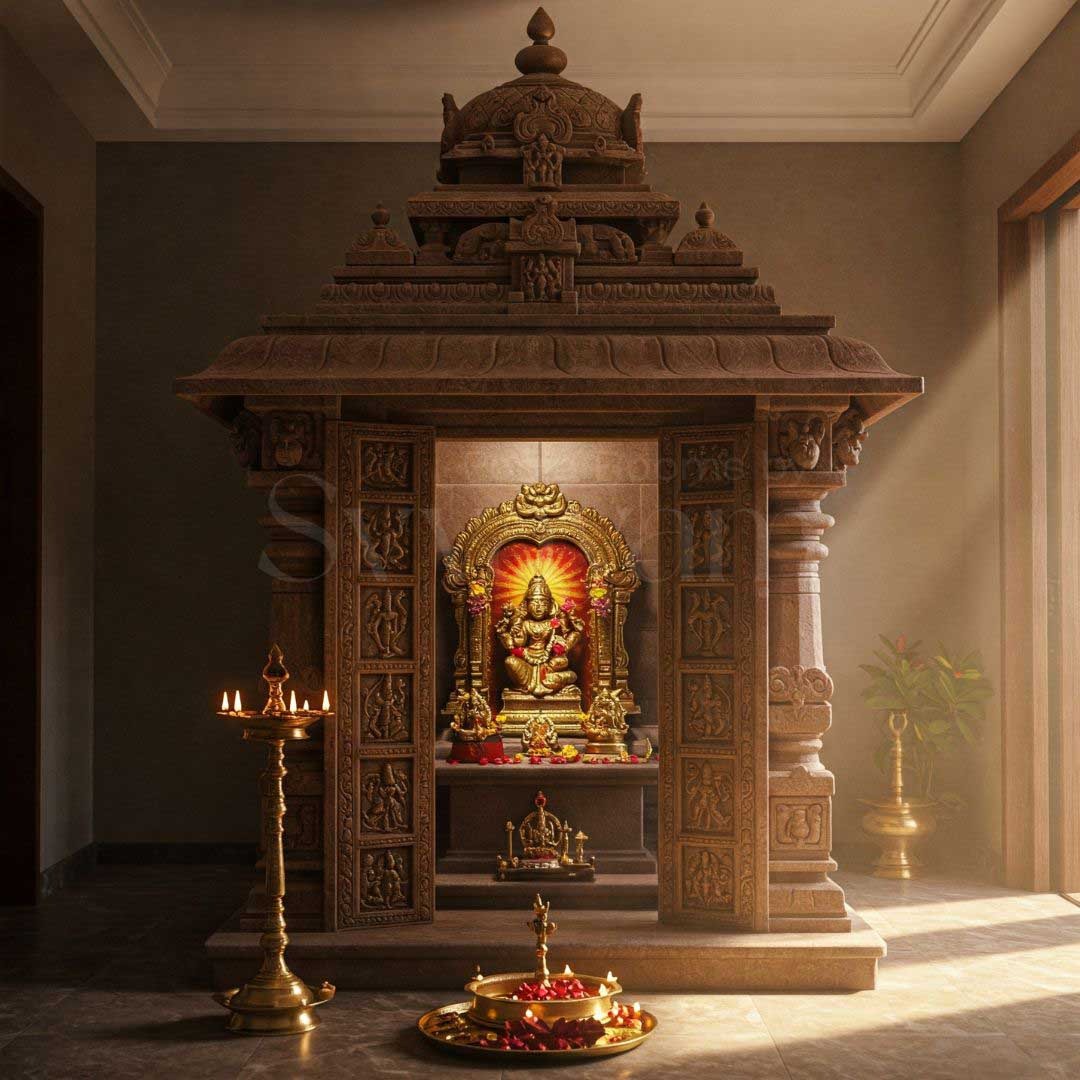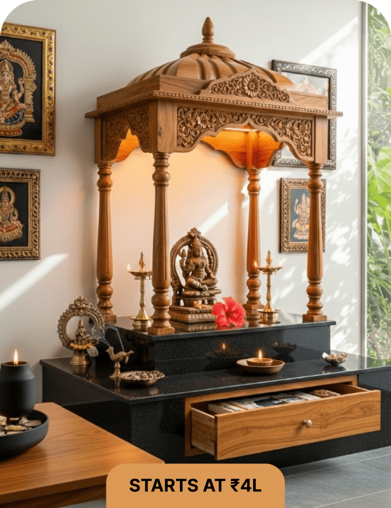Every premium pooja mandir we craft begins with you, your ideas, your traditions, your way of worship. From there, our master artisans in Tirupati, who have carried forward generations of skill and devotion, bring your vision to life through timeless pooja mandir designs.