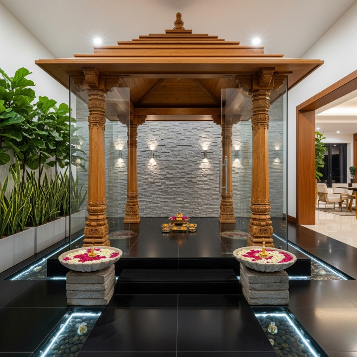 At Svvayam, we understand that a sacred corner in your home deserves more than just design; it deserves meaning. As a luxury design-first atelier, we are material agnostic, giving us the freedom to shape custom pooja mandir creations that reflect your vision, without boundaries.